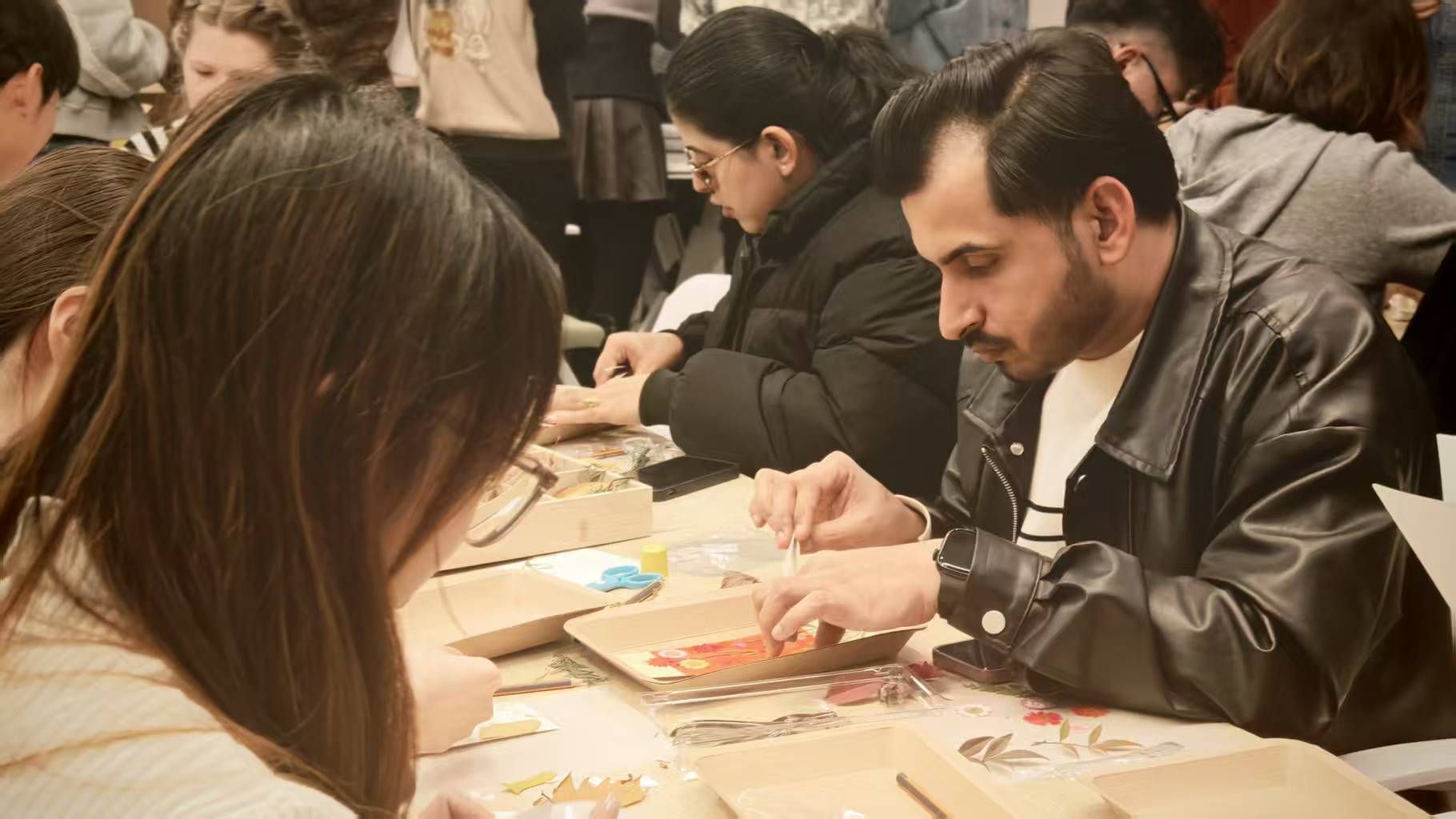 Bailu(Lou) from France saw those two hands-on activities as a unique expression of Chinese culture, noting, "Back in France, we tend to express emotions in different ways." At the same time, a Russian international student mentioned that in her culture, people also have traditions of creating handicrafts from leaves, flowers, and paper to extend best wishes to family members. She shared that the event offered her a valuable opportunity to make friends from various countries and engage in cultural exchange, adding, "I’ll definitely invite my friends to join the next event together."