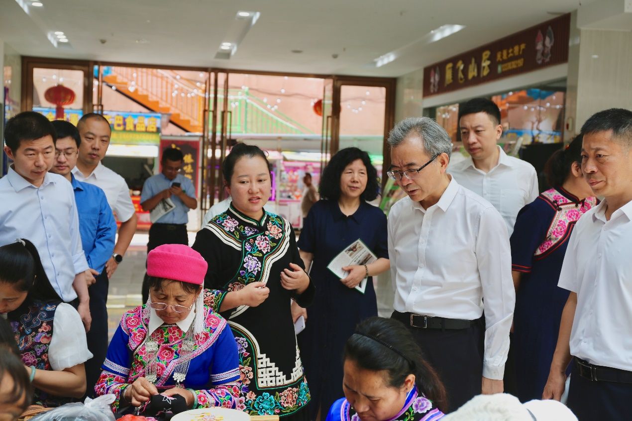 Tan Zhemin and the NJU delegation also conducted field research on the development of the mushroom industry in Luoshao Village, inspected the ginseng fruit seedling breeding base and summer ginseng fruit experimental field project, visited Yi embroidery workshops and monitoring households, and extended regards to university officials serving temporary positions at Shuangbai County.