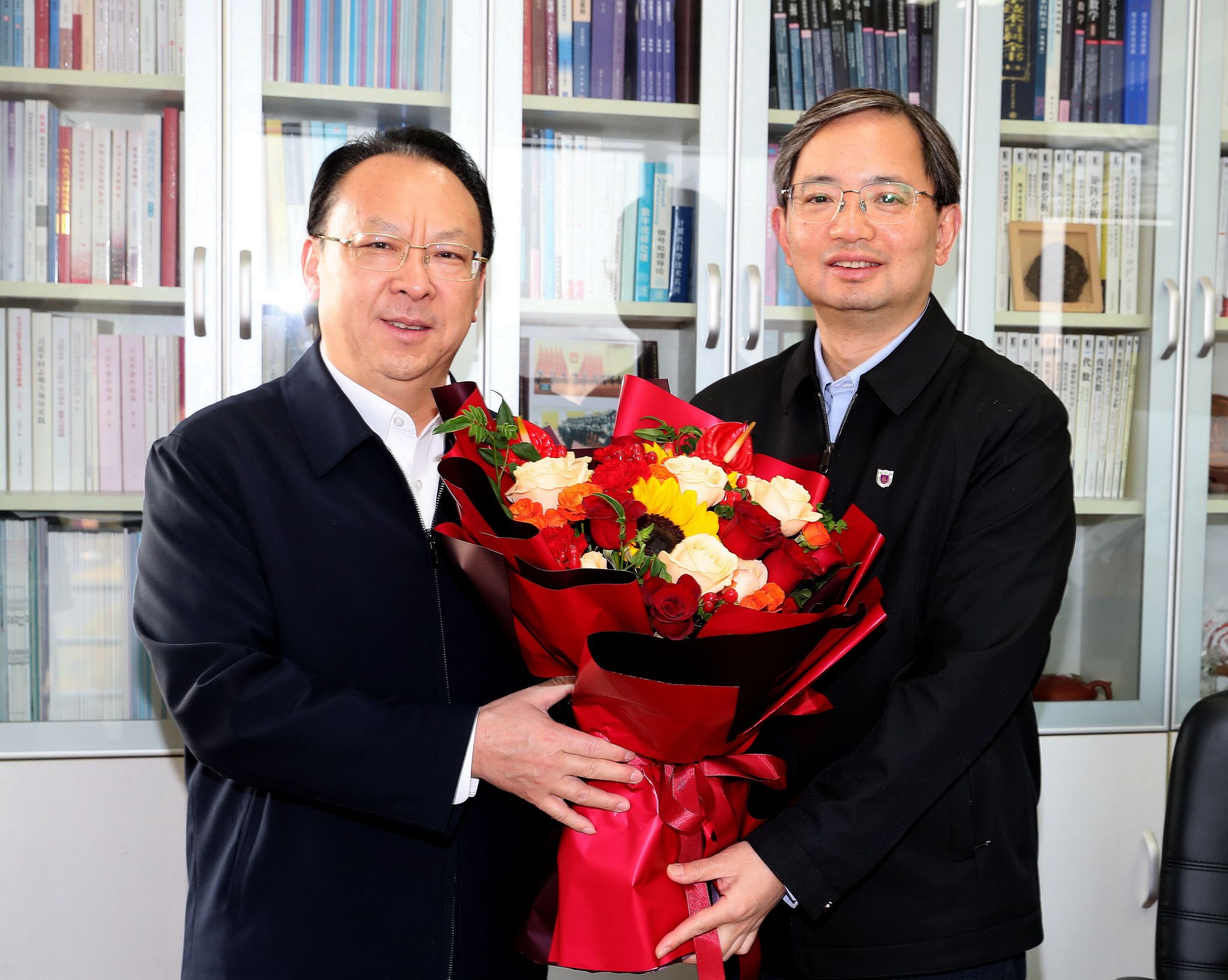 On November 24, Tan Tieniu, Chair of NJU CPC Council and Academician of the Chinese Academy of Sciences (CAS), visited NJU's newly elected academicians of the CAS: Vice President and Professor Zhou Zhihua from the School of Computer Science/School of Artificial Intelligence, Professor Shi Yi from the School of Electronic Science and Engineering, and Professor Chen Yanfeng from the College of Engineering and Applied Sciences. He extended his heartfelt congratulations and presented them with flowers.