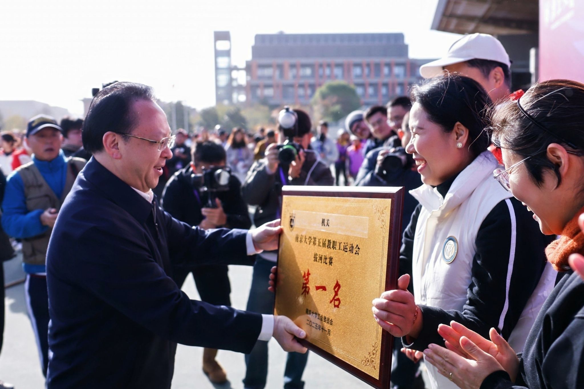 11月28日,南京大学第五届教职工运动会在仙林校区举行。来自36个分工会的1000余名教职工齐聚赛场,切磋技艺,展现风采。校党委书记、中国科学院院士谭铁牛出席活动。