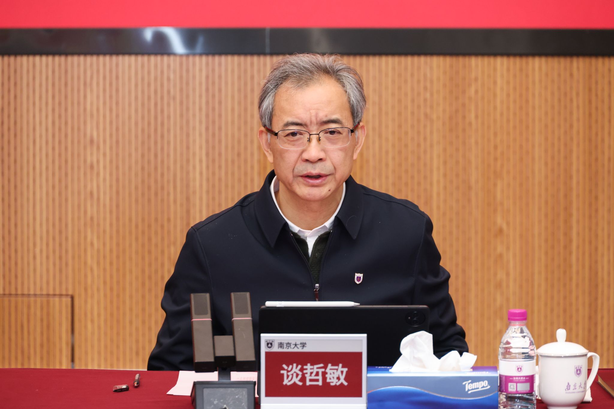 谈哲敏指出,思政课是塑造青年学生世界观、人生观、价值观的主渠道,思政课教师责任重大、使命光荣。他结合近期讲授思政课的感受提出三点意见:一是要立足南大学生独特的学习旨趣,结合不同学科专业学生的知识背景、思维特点与发展方向,因校施教,因材施教,推动思政教育与专业教育有机融合,建设具有南大特质的思政课。二是要坚持政治性和学理性的有机融通,讲清楚习近平新时代中国特色社会主义思想的逻辑起点、理论源头、体系框架和哲学基础。三要坚持“进课堂”更“进头脑”,“教知识”更“启思维”,引导学生自觉运用习近平新时代中国特色社会主义思想的观点方法分析新问题、学习新理论、实现新作为。