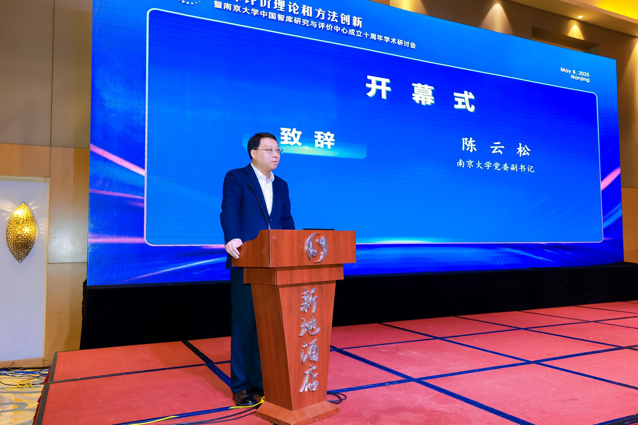 南京大学党委副书记陈云松,中共江苏省委宣传部二级巡视员陈晔,中国科学院文献情报中心主任刘细文,江苏省社科联党组成员、副主席许益军,江苏省社会科学院党委委员、副院长王月清分别致辞讲话。开幕式上,陈云松代表学校向参会领导和专家学者表示热烈欢迎。他指出,十年来,南京大学坚持以习近平总书记关于中国特色新型智库建设的重要指示精神为指引,全面实施咨政服务能力提升工程,探索智库研究员职称评聘标准和成果评价体系建设,逐步建成以国家高端智库培育单位为头雁的“国家级智库-省级智库-校级智库和具有智库功能的各级学术科研平台”的智库雁阵体系,在这一过程中,中心始终积极嵌入学校智库体系建设,坚持以“一体两翼”为发展格局,在平台建设、智库理论体系构建、期刊出版、人才培养等方面持续发力、不断突破,提供了坚实的智力支撑。