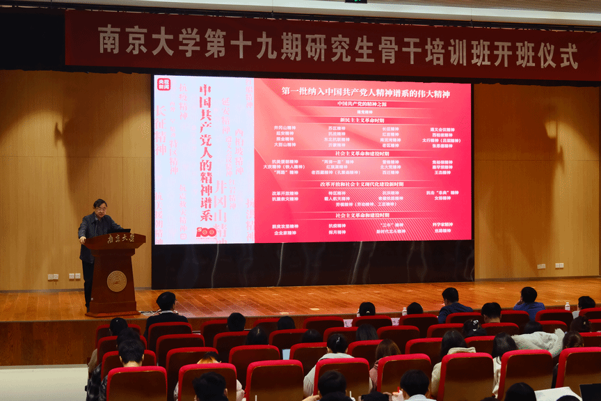 开班仪式后,全体研骨班学员和四校区研究生党支部书记以线上线下相结合的方式共同参与了全国“中国共产党人精神谱系”宣讲活动,特别邀请中国科学院院士、南京大学化学化工学院郭子建教授作“弘扬和践行科学家精神,大力推进前沿交叉研究”专题讲座。